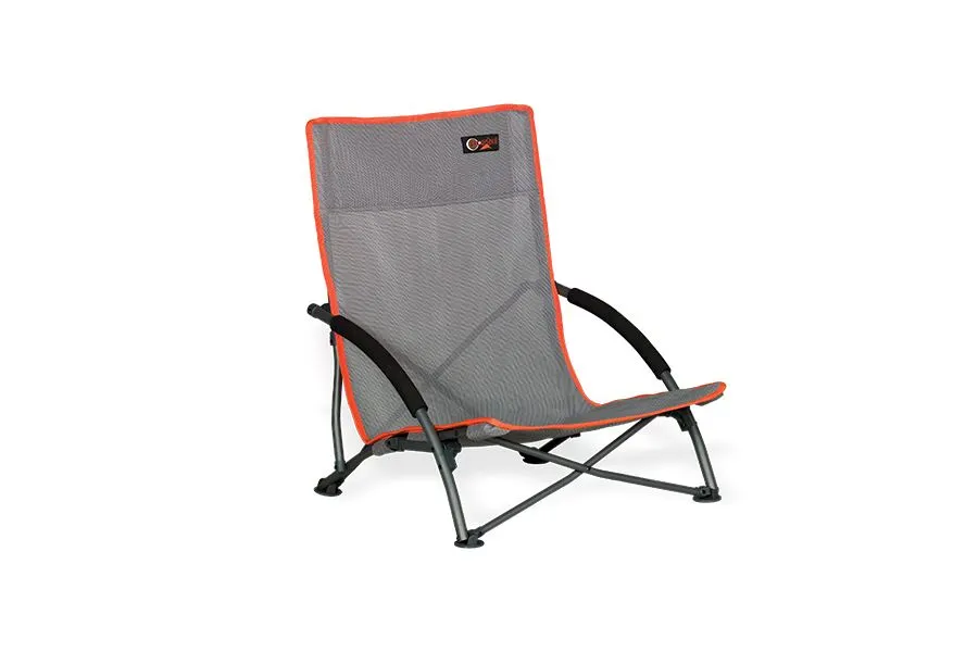 Stilren strandstol med høj ryg og behagelig skum på begge armlæn.